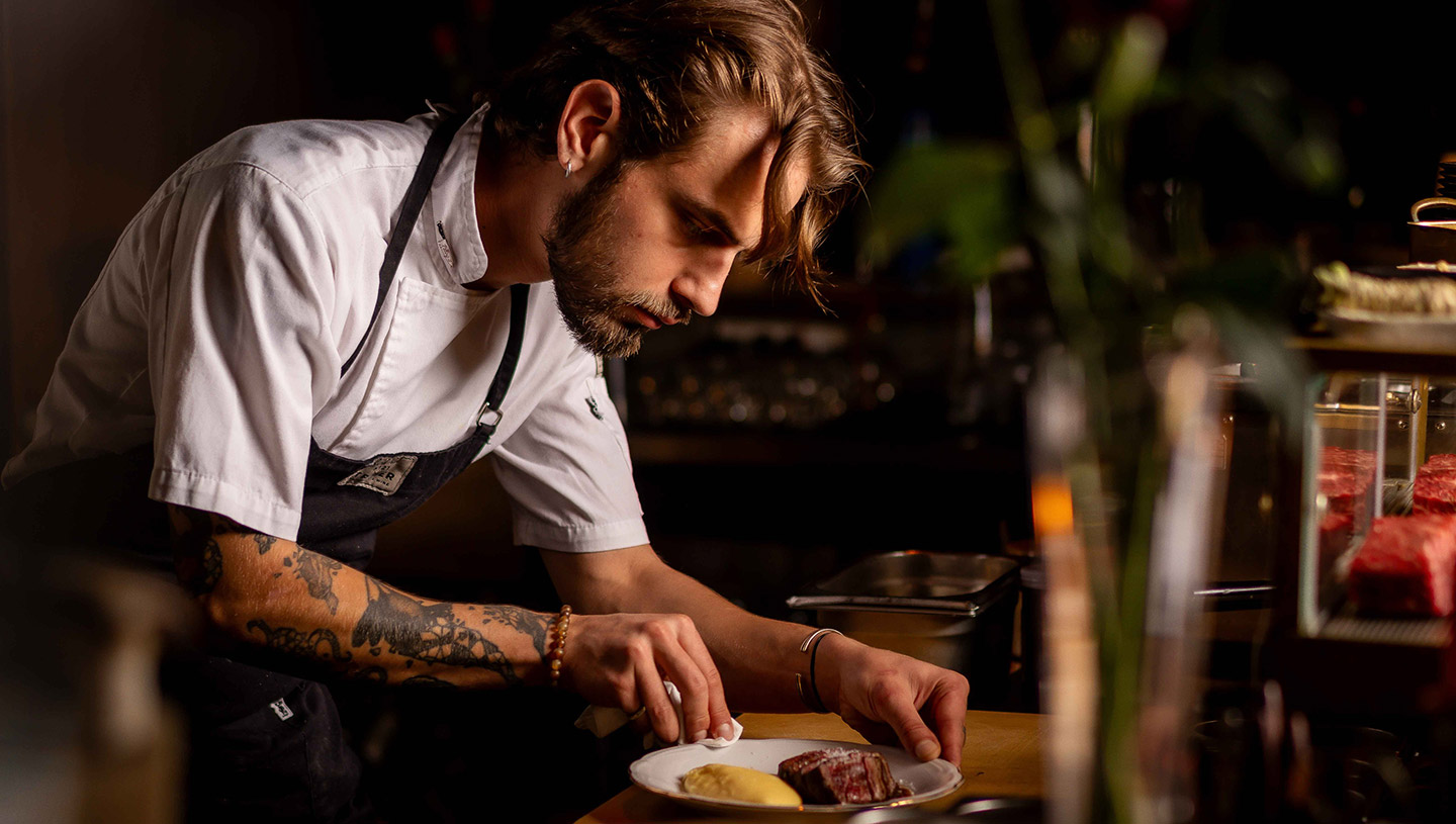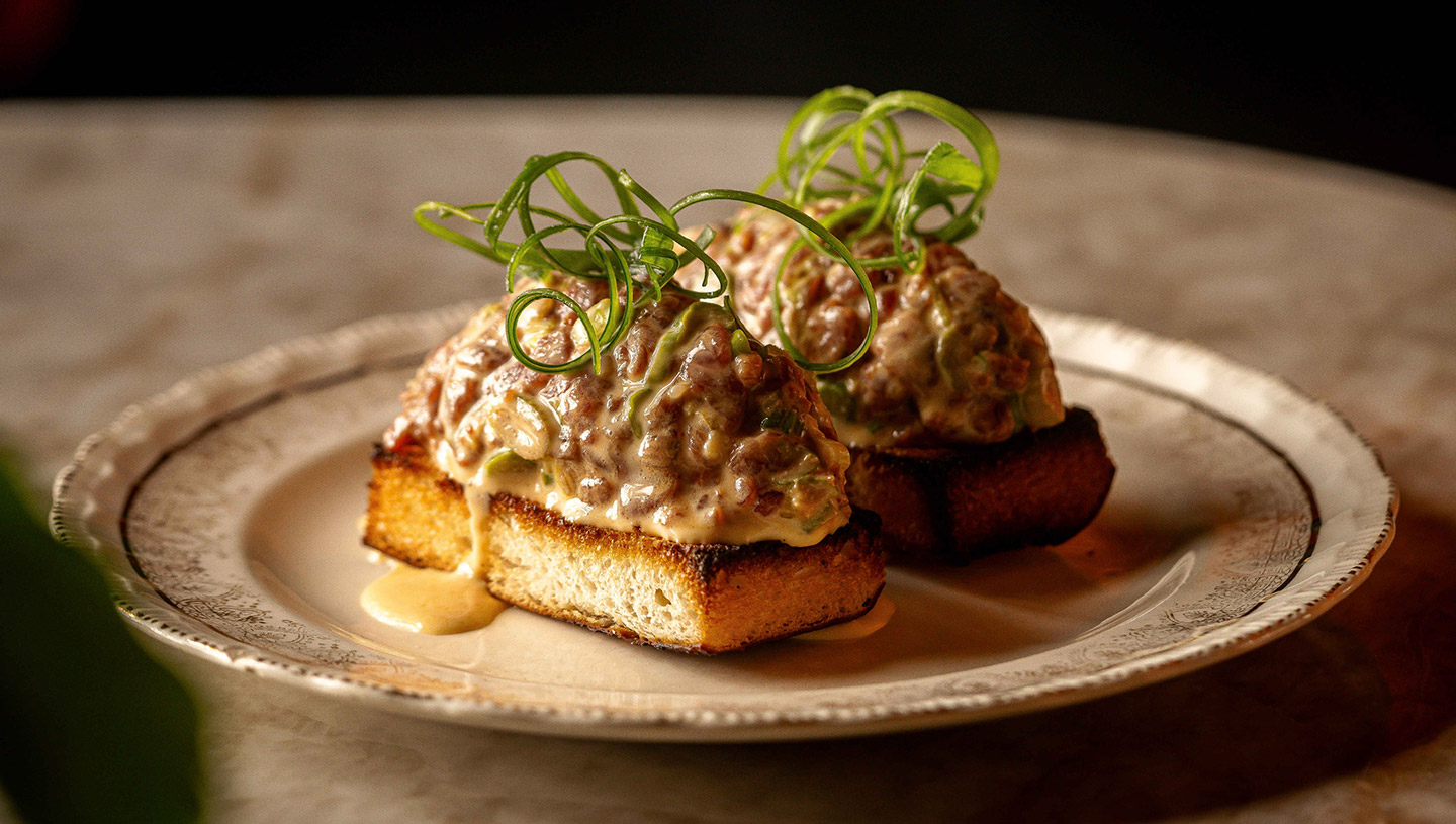 Pull back a velvet curtain on Triger’s lower floor and you’ll uncover a portal to another world, where time flows differently and even the laws of gravity no longer apply. This is Rouge, a secret space where, once again, meat and alcohol take center stage. Around them, we have built the most fitting decor: marble bar, wooden walls, atmospheric lighting, and warm, immersive sound. The dishes are small and perfectly formed. The drinks are exceptional. The music is exactly what we like. Rouge is open four times a week and there are only 26 seats to keep things intimate.